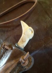 Ce couteaux de cou sur le thème de la corneille. Une lame en forme de saule très agressive en hommage à la déesse gauloise Catubodua (littéralement corneille de combat).
