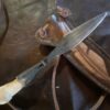 Ce couteaux de chasse d’inspiration médiévale, Gaston Phébus aurait sûrement offert ce couteau à un de ses veneurs lors de ses chasses même si, je dois bien le reconnaître il n’était pas très bien vu à cette époque d’offrir une lame d’où ce mythe de donner une pièce en échange d’un couteau.